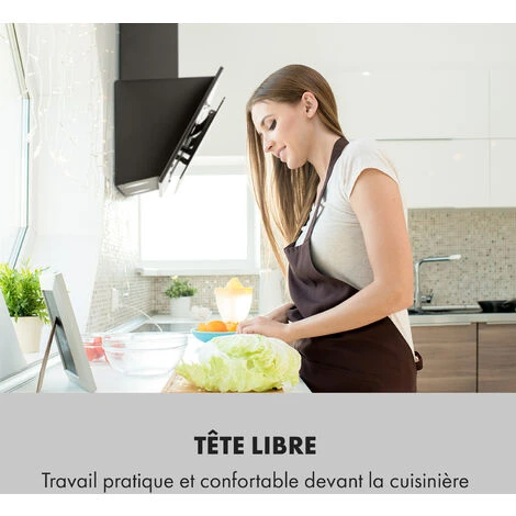 Un air plus sain dans la cuisine : la hotte aspirante Alessia de Klarstein confère aux cuisines un éclat noble et élimine avec dynamisme la vapeur et les émanations lors de la cuisson