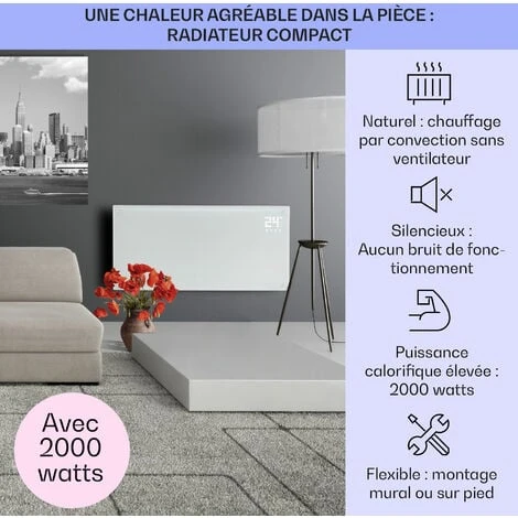 Radiateur 2000 W pour le chauffage personnalisé des pièces à vivre, pièces humides ou jardins d’hiver