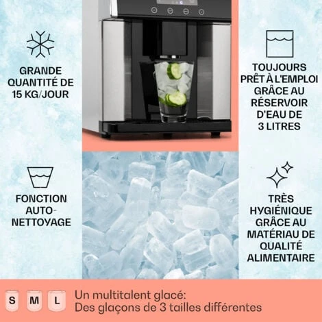 Puissante machine à glaçons : fabrique quotidiennement jusqu’à 15 kg de glace