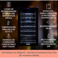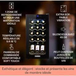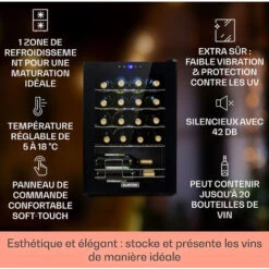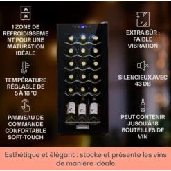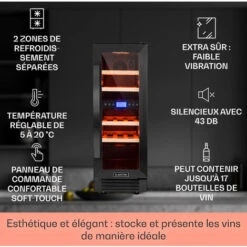 Vinovilla 17 Cave à Vin à Deux Zones Duo Encastrable 53 L 17 Bouteilles 3 Couleurs Porte Vitrée