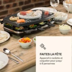 Tenderloin 100 Raclette-grill 1200W 8 Personnes 2x Plaques En Pierre Naturelle