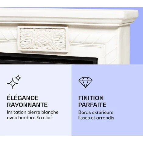 Une atmosphère de cheminée romantique avec un jeu de flammes vivant – sans feu ni fumée. La lumière douce à différents niveaux d’intensité imite à s’y méprendre les flammes et les bûches incandescentes, de sorte que la cheminée électrique Frosty Peak de Klarstein transforme instantanément la pièce en un petit bijou unique et confortable. La fonction de chauffage, qui peut être activée, t’offre une chaleur agréable avec un spectre de température de 10 à 30 °C. La fonction de chauffage peut être activée par le biais de la télécommande. Grâce à la minuterie, tu peux les régler facilement et adapter le fonctionnement du pittoresque Klarstein Frosty Peak entièrement à ton rythme hebdomadaire à la maison. Ce confort est encore accentué par le contrôle par télécommande. Son aspect extérieur reproduit dans les moindres détails une véritable cheminée en pierre, mais le matériau est beaucoup plus léger.