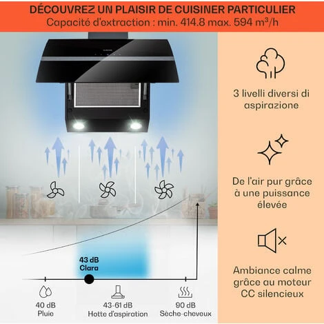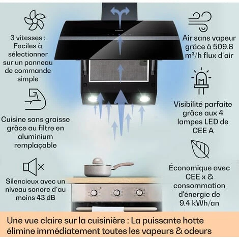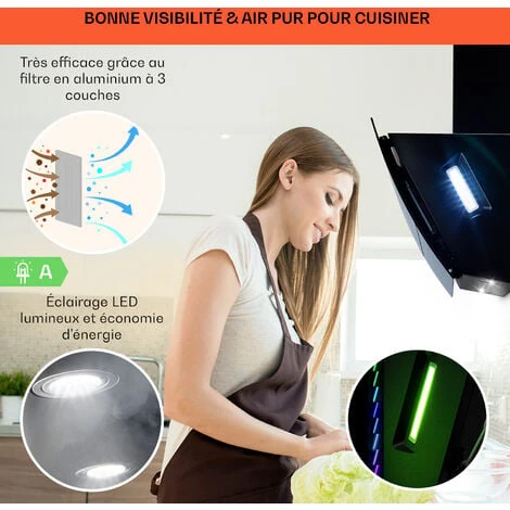 COMBINE EFFICACITÉ ET ÉCOLOGIE : Reconnue au rang d’efficacité énergétique A, notre hotte aspirante est extrêmement puissante tout en réduisant le coût énergétique de votre foyer. La hotte est économique et puissante !