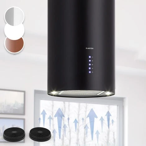 La hotte d’extraction en îlot Klarstein Beretta est d’aspect résolument élégant. Le boîtier rond en inox noir donne à votre îlot de cuisson l’éclat de l’élégance.