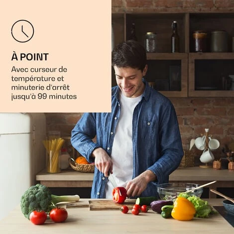 À point : Avec curseur de température et minuterie d’arrêt jusqu’à 99 minutes