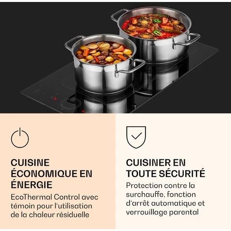 VOTRE CUISINE EN SÉCURITÉ : Les plaques de cuisson electrique sont dotées de multiples fonctions de sécurité. Les plaques electriques 2 feux ont une minuterie, sécurité enfant, protection surchauffe, arrêt automatique et une détection de casserole.