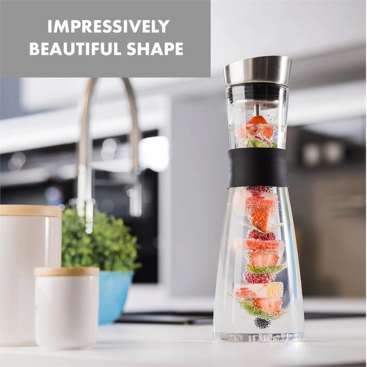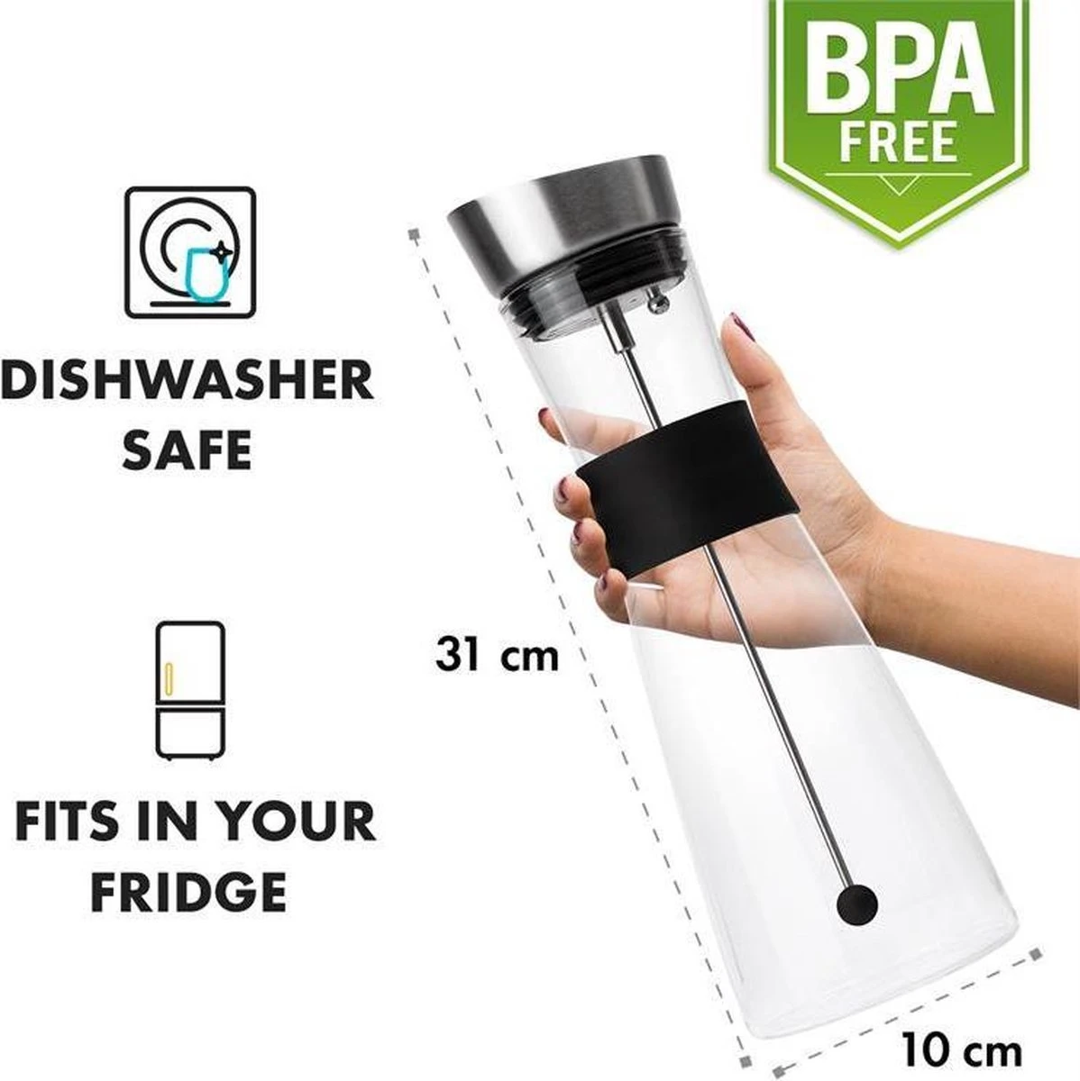 - Un accroche-regard rafraîchissant: une carafe en verre élégante d’un volume de 1 litre